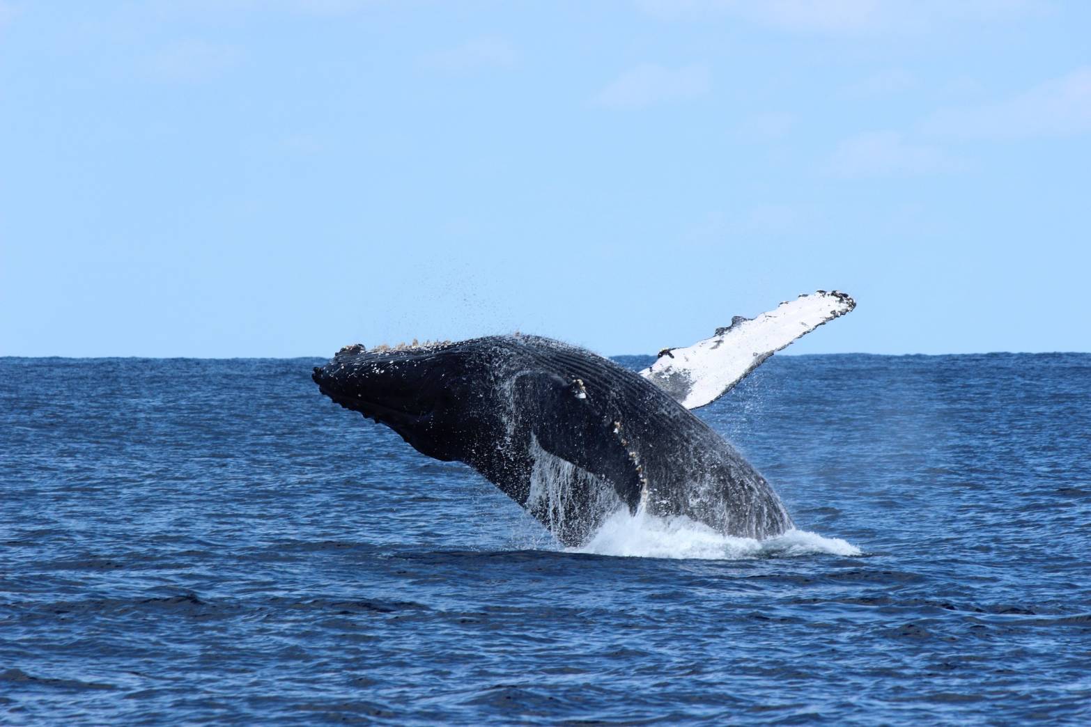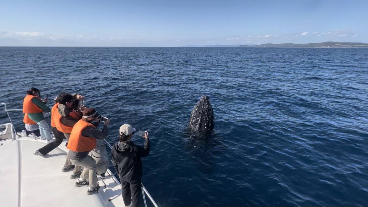 30トンもの巨体が空を飛ぶ!?水面から豪快にジャンプする「ブリーチング」は圧巻! 水しぶきの音はまるで爆発音。 「遊んでるの?」「合図?」理由は謎だけど、見れたら超ラッキー!船上は歓声の嵐です!